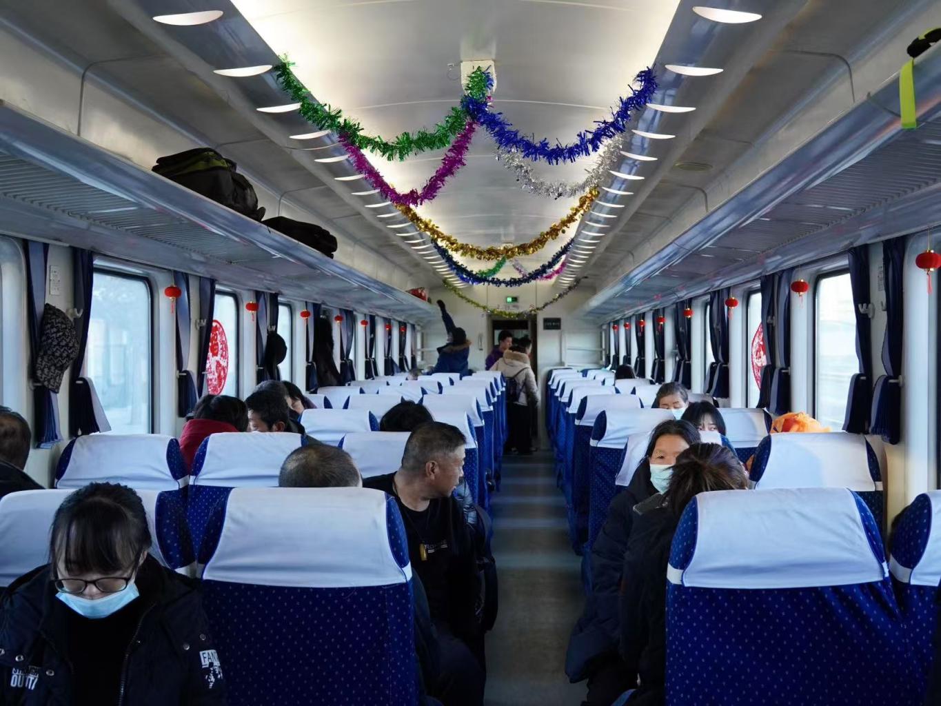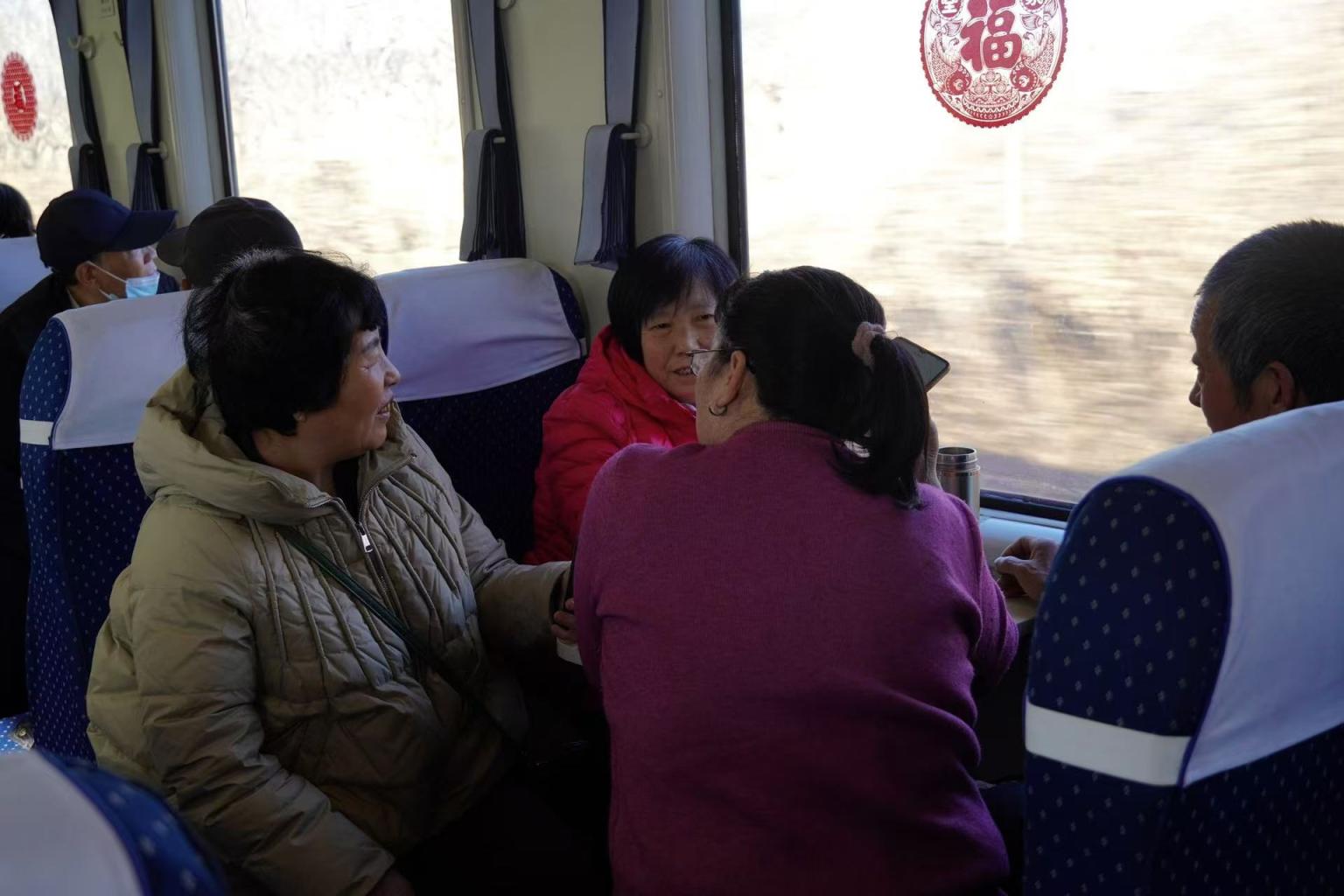 “村里过年的气氛比城里更浓,我带俩孩子转转,找找年味儿。”来自海淀的张先生特意带着两个放寒假的女儿坐着火车去赶大集。3个多小时的乘车时间有点儿长,却正好成为享受亲子时光的“良机”。 阳光透过大窗,晒到蓝色布面的座位上,父女三人开心地聊着天。